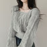 , Idle Style Solid Color Lantern Sleeve Square Collar Pullover Sweater