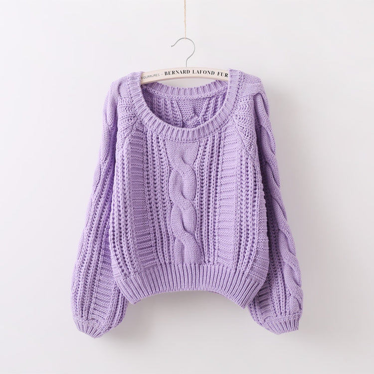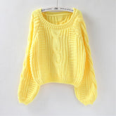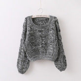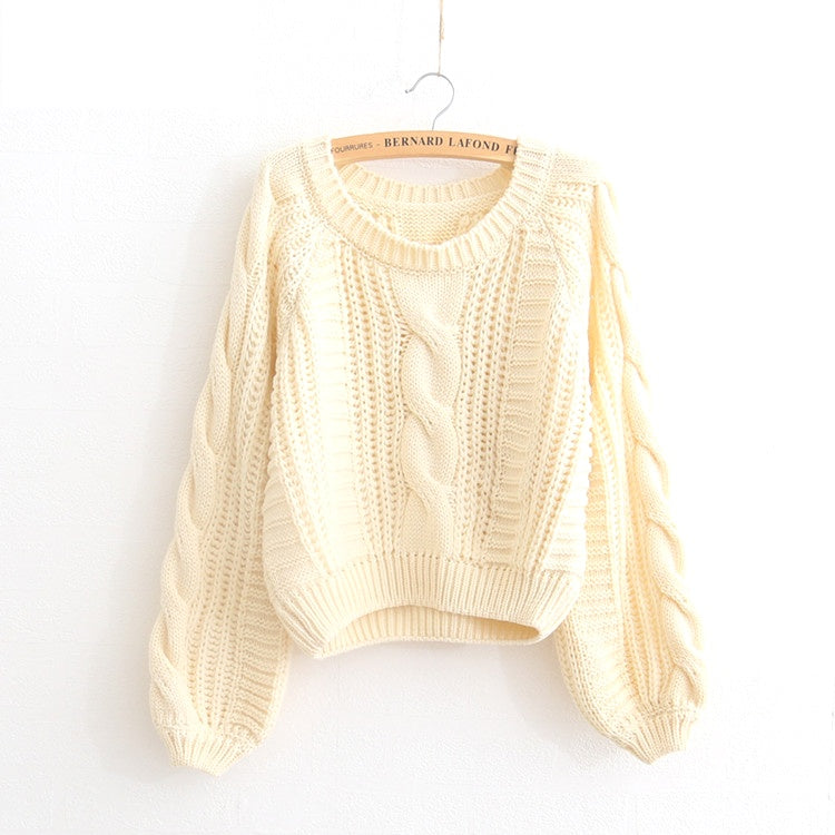 Pullover Loose Thick Line Short Puff Sleeve Sweater