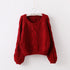 Pullover Loose Thick Line Short Puff Sleeve Sweater