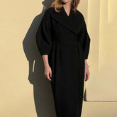 Embrace timeless elegance with our Women's Classic Winter Long Coat. This sophisticated double-breasted overcoat is designed to be a cornerstone of your cold-weather wardrobe. It features a dramatic wide lapel and a defining self-belt that cinches at the waist to create a flattering, feminine silhouette. The full-length design and premium solid color ensure a polished look that pairs effortlessly with any casual outfit.