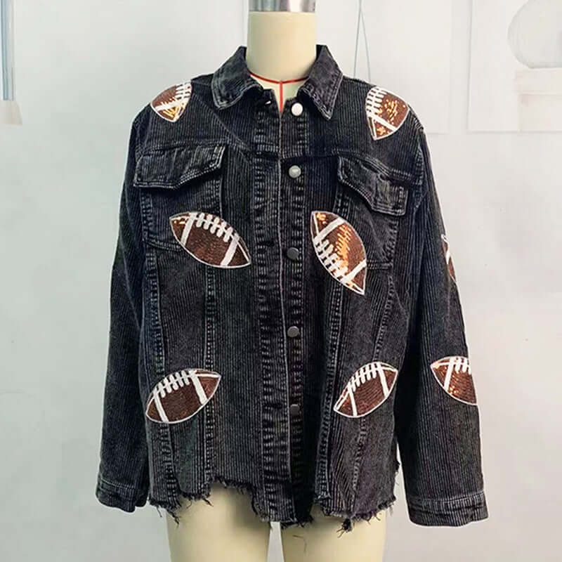 Women's Cropped Corduroy Jacket, Football Game Day Short Jacket With Button Front And Raw Hem For Fall Outfits
