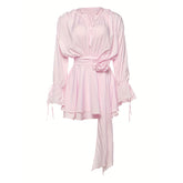 Romantic Tie-Neck & Floral Detail: The adjustable tie and 3D floral decoration create a uniquely feminine and charming focal point.