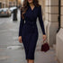 Command the room with understated sophistication in our Women's Elegant V-Neck Wrap Dress. Expertly tailored for the modern professional, this dress features a  flattering cross-wrap V-neckline and a seamless hidden back zipper , ensuring a clean, streamlined silhouette. The  discreet front buttons and a subtle slit hem  add classic detail and ease of movement, making this midi dress as functional as it is beautiful. Designed for all-day comfort, it's your ultimate power piece for the office, client meetings, and formal events.
