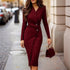 Command the room with understated sophistication in our Women's Elegant V-Neck Wrap Dress. Expertly tailored for the modern professional, this dress features a  flattering cross-wrap V-neckline and a seamless hidden back zipper , ensuring a clean, streamlined silhouette. The  discreet front buttons and a subtle slit hem  add classic detail and ease of movement, making this midi dress as functional as it is beautiful. Designed for all-day comfort, it's your ultimate power piece for the office, client meetings, and formal events.