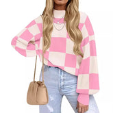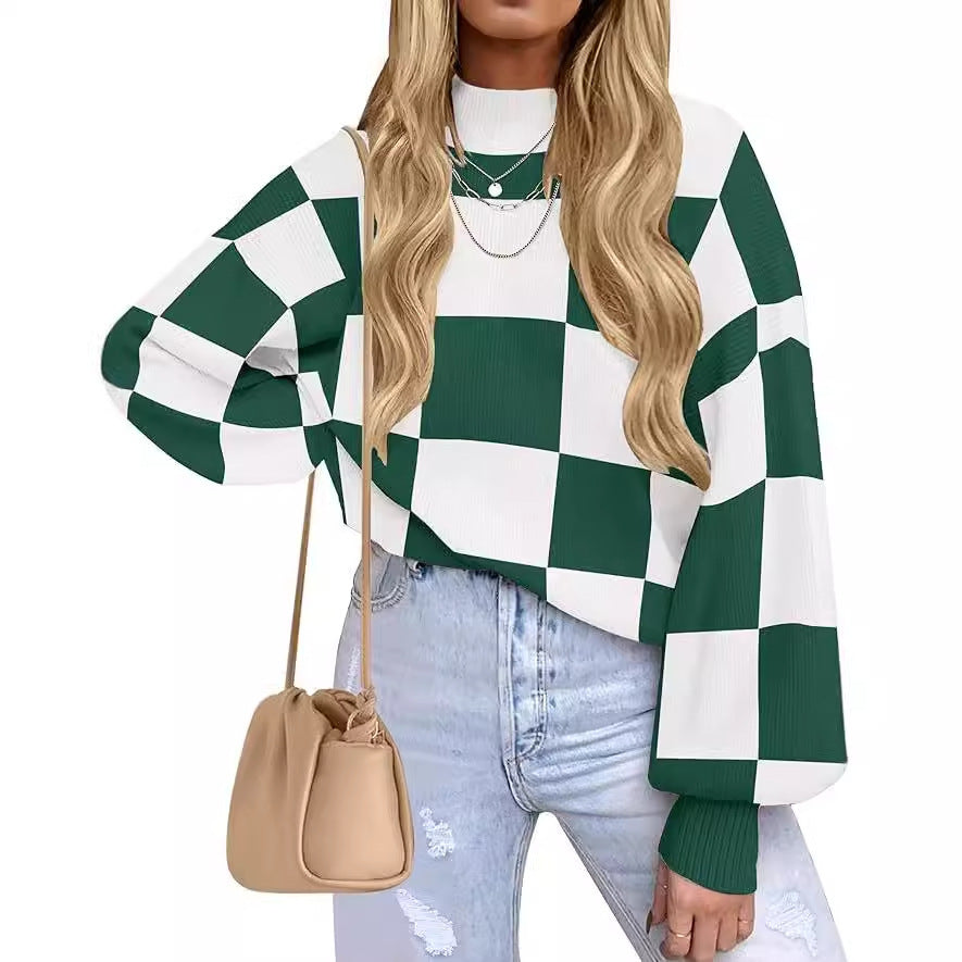Women's Fashion High Collar Long Sleeve Striped Rib Sweater