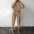 Discover the perfect balance of comfort and understated style with our Women's Solid 2-Piece Loungewear Set. This coordinated outfit is designed for ultimate relaxation at home, featuring a soft  round neck long sleeve top  paired with elegant  wide leg pants adorned with sophisticated pleated details . The clean, minimalist design and fluid silhouette make it an ideal choice for unwinding during the cool, comfortable days of spring and fall.